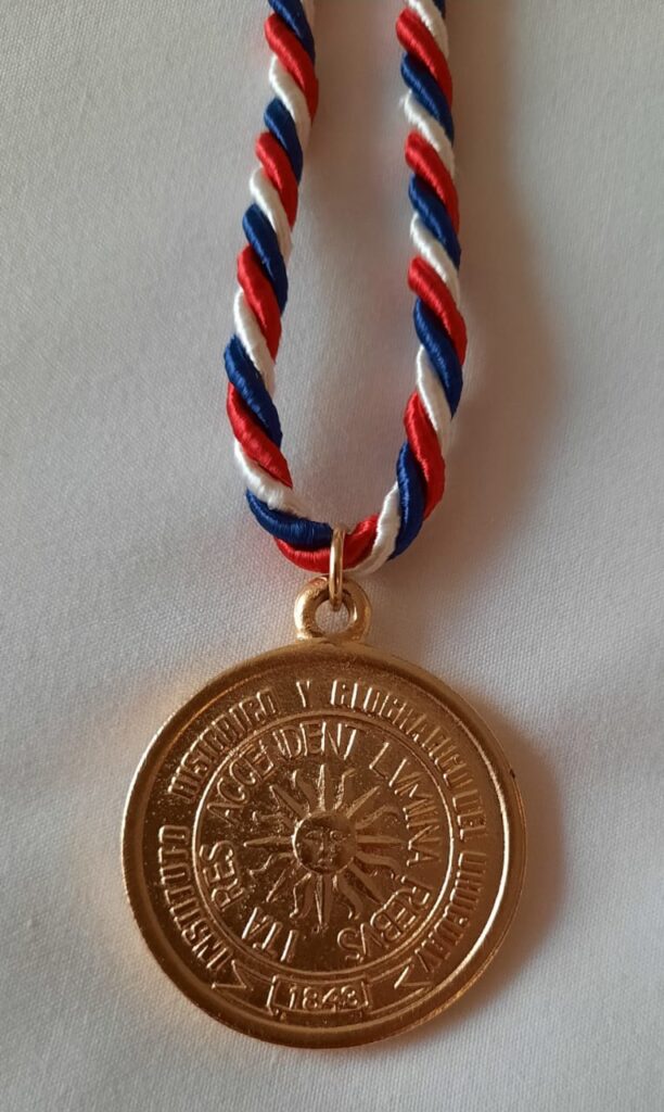 Durante su permanencia en Montevideo, el nuevo integrante de la entidad también recibió el diploma y medalla de miembro del Instituto de Historia y Cultura Militar del Uruguay “Coronel Rolando Laguarda Trías”. Le hicieron entrega de dichas credenciales el presidente de la entidad, doctor Néstor Careaga; el vicepresidente, coronel Carlos Díaz Vecino, y el vocal licenciado Alberto del Pino Menck.